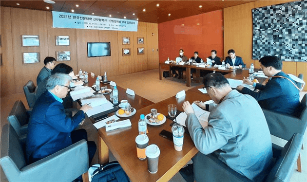한국전문대학 산학협력처・단장협의회는 27일부터 28일까지 양일간 파크 하얏트부산(부산시 해운대구)에서 「산학협력 미래 발전을 위한 아젠다 발굴」을 주제로 2021년 추계 임원회의를 개최하여 심도 있고 열띤 토론을 나누었다.
