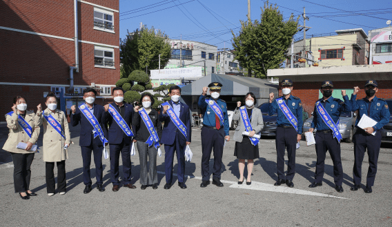 안산시의회 박은경 의장과 이기환 문화복지위원장은 27일 화랑초등학교 통학로 일원에서 진행된 '함께해요 안전순찰' 행사에 참여해 참석자들과 함께 통학로 안전시설물을 점검했다.