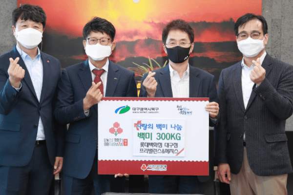 프리밸런스&메지스에서 롯데백화점 대구점과 함께 10월 27일 북구 관내 저소득 가구에 전달해 달라며 100만원 상당의 백미 300kg를 대구 북구청에 기탁하였다.