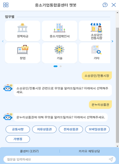 중소벤처기업부는 1357중소기업통합콜센터에 ‘인공지능 상담시스템(챗봇 시스템)’을 도입해 이번 달 20일부터 정식 서비스에 들어간다고 밝혔다.