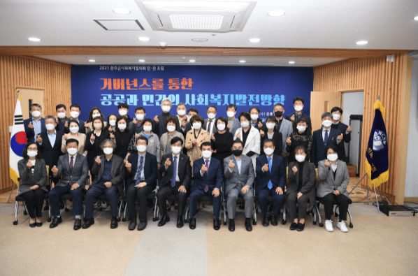 완주군은 27일 오후 완주군가족문화교육원 2층에서 박성일 완주군수와 서남용 군의회 의원, 이중하 완주군사회복지협의회장 등 사회복지 관계자들이 참석한 가운데 ‘2021년 완주군 사회복지협의회 민·관포럼회’를 개최하고 거버넌스를 통한 완주군의 공공과 민간의 사회복지 발전 방향에 대한 토론을 벌였다.