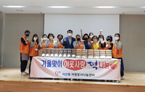 평택시 지산동 자원봉사나눔센터는 27일 지산동행정복지센터에 모여 관내 홀몸노인 및 저소득 가정 아동을 위한 ‘겨울맞이 이웃사랑 떡 나눔 봉사활동’을 실시했다.