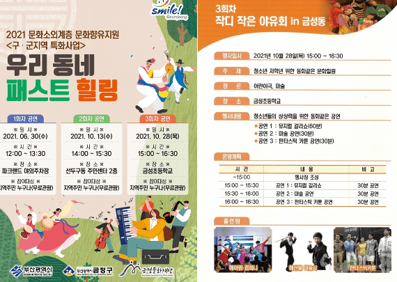 (재)금정문화재단은 찾아가는 문화공연인 ‘우리동네 패스트힐링’ 세 번째 공연을 오는 28일 오후 3시 금성초등학교 강당에서 개최한다.