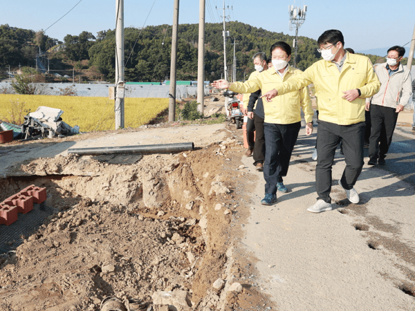 이병환 성주군수는 10월 25일 심산문화테마파크 진입도로 정비사업 현장과 심산문화테마파크 조성 예정부지(대가면 칠봉리)를 방문하여 사업 전반에 대하여 점검을 실시하였다