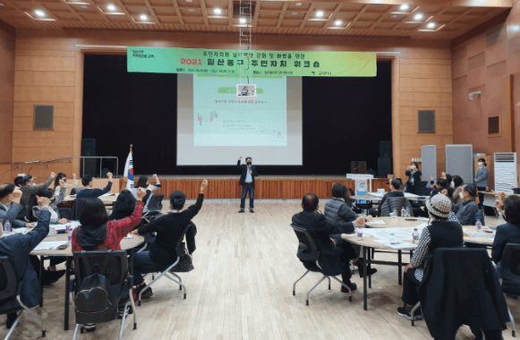 고양시 일산동구는 지난 26일부터 일산동구청에서 주민자치회 위원을 대상으로 주민자치 워크숍을 개최하였으며, 코로나19 사회적 거리두기의 방역 수칙에 따라 마스크 착용, 발열 체크, 손 소독제 비치 등을 준수하며 진행하였다.