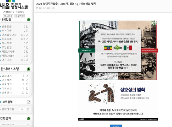 전북 순창군 소속 공직자들이 매주 업무 시작전에 웹툰형 청렴학습을 통해 반부패 및 청렴의식을 높여나가고 있다. 이들은 출근해서 업무용 시스템에 로그인하면 청렴과 관련된 다양한 사례를 소개하는 웹툰식 학습으로 손쉽게 청렴의식을 키워나가고 있다.