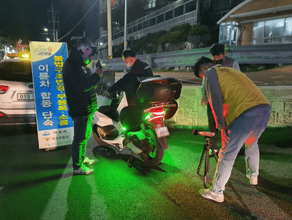 여수시가 지난 25일 여수경찰서, 한국교통안전공단 광주전남본부 등과 유관기관 합동 단속을 실시해 법규 위반 이륜차 47건을 적발했다고 밝혔다.