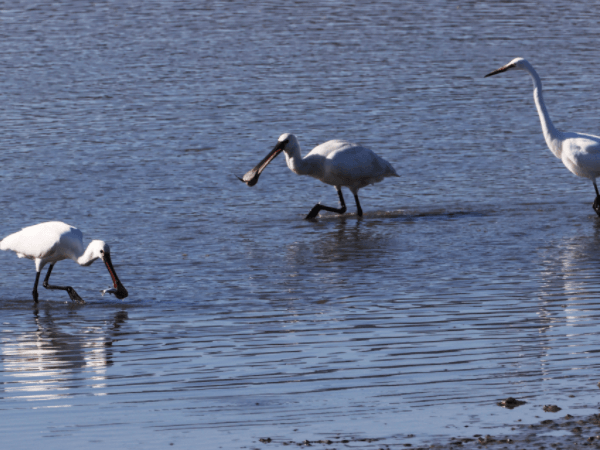 지난 27일 남해안 생태자원의 보고인 전남 강진군 강진읍 강진만생태공원이 월동을 위해 날아드는 철새들로 활기가 넘치는 가운데 노랑부리저어새(천연기념물 제205-2호) 무리가 썰물로 얕아진 가장자리를 옮겨 다니며 사냥에 여념이 없다.