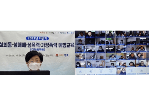 인천 중구는 지난 26일 중구청 간부공무원을 대상으로 ‘2021년 하반기 4대폭력(성희롱·성매매·성폭력·가정폭력) 예방교육’을 실시했다.