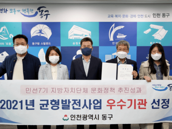 인천 동구의 ‘동구문화체육센터 건립사업’이 대통령직속 국가균형발전위원회가 주최한 '2021년 균형발전사업 우수사례'에 선정돼 '우수 기관표창'을 수상했다.