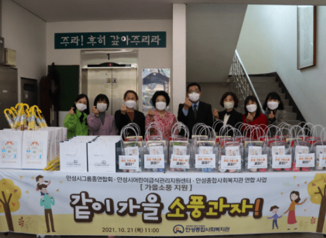 안성종합사회복지관은 지난 21일 안성시어린이급식관리지원센터, 안성시그룹홈연합회와 함께 ‘같이 가을소풍 과자!’ 전달식을 진행했다.