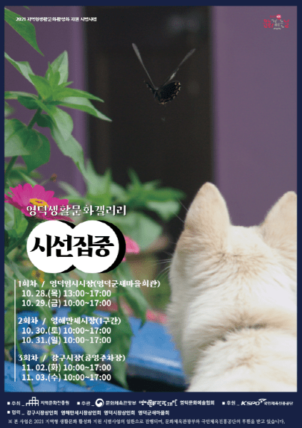 (재)영덕문화관광재단이 ‘영덕5일장 문화난장 <영덕쿵덕>’을 10월 28일 강구시장을 시작으로 29일 영덕시장, 30일 영해만세시장에서 추진한다. ‘지역형생활문화활성화 시범사업’의 일환으로 영덕의 생활문화동호회와 함께 마련했다. 이와 동시에 ‘영덕생활문화갤러리<시선집중>’도 10월 28~29일 영덕시장, 10월 30~31일 영해만세시장, 11월 2~3일 강구시장에서 열린다.
