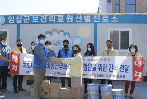 지난해 코로나19의 발생으로 약 2년간 힘겹게 싸운 임실군청 공무원의 노고를 격려하고자 임실군청공무원노동조합에서 정성스럽게 준비된 떡과 음료를 전달하며 직원들의 의견을 청취하였고 전라북도공무원노동조합연맹에서는 전달품 비용지원이 이루어졌다.