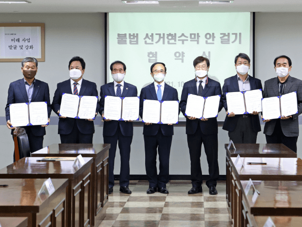 환경보호를 위해 선거관리위원회가 인정하는 공식 현수막 외에 선거 현수막을 걸지 않기로 약속했다.