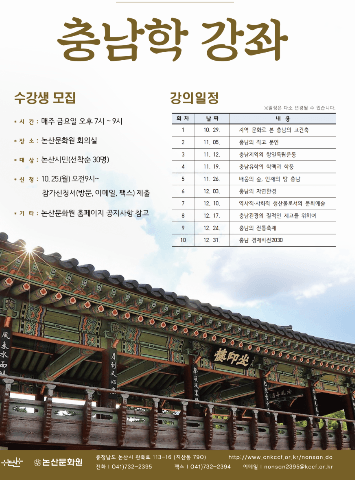 논산문화원은 2021년 논산시 평생학습 프로그램 지원 사업인 ‘2021. 충남학 강좌’ 수강생을 모집한다.