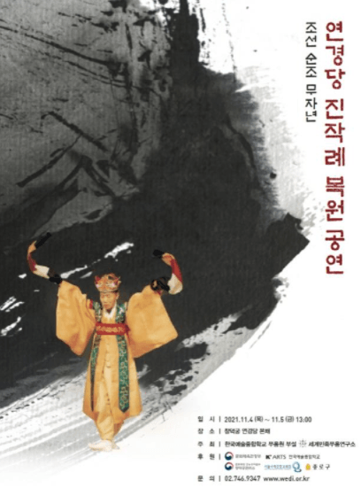 문화재청 궁능유적본부 창덕궁관리소는 한국예술종합학교 무용원 부설 세계민족무용연구소(소장 서정록)와 함께 오는 11월 3일부터 5일까지 창덕궁 후원 연경당에서 「조선 순조 무자년 연경당 진작례」를 재현한다.