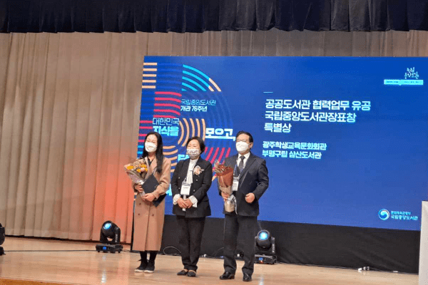 광주학생교육문화회관이 2021년 공공도서관 협력업무 유공 기관으로 선정돼 26일 국립중앙도서관 국제회의장에서 개최된 시상식에서 국립중앙도서관장 특별상을 수상하고 포상금 100만 원을 지급받았다.