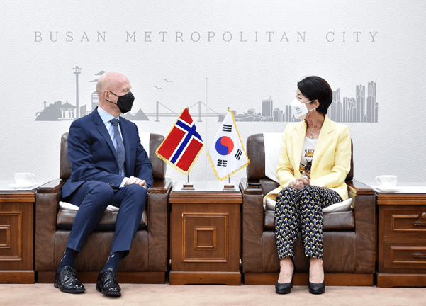 부산시는 박은하 부산국제관계대사가 오늘(26일) 오전 프로데 솔베르그(Frode Solberg) 주한노르웨이대사를 접견했다고 밝혔다.