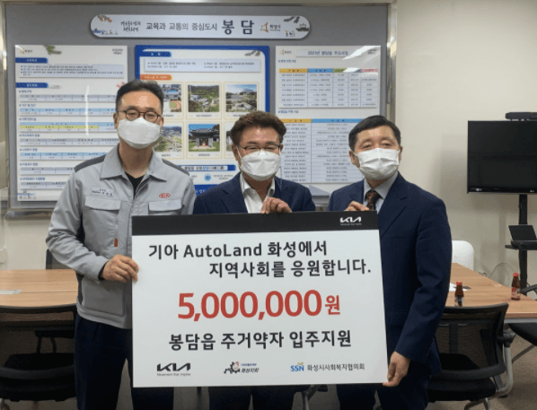 화성사 봉담읍 행정복지센터는 26일 화성시사회복지협의회와 기아화성공장의 후원으로 봉담읍 주거취약자의 입주지원금 전달식을 진행했다.