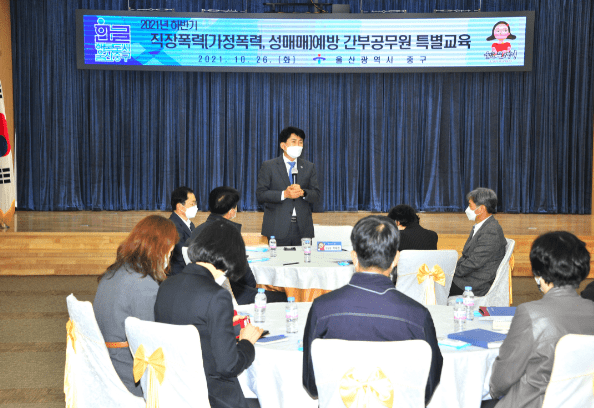 울산 중구가 26일 오후 3시 중구컨벤션에서 ‘2021년 하반기 간부공무원 직장폭력 예방 특별교육’을 실시했다.