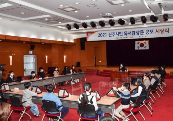 진주시는 26일 시청 시민홀에서 ‘2021 진주시민 독서감상문 공모’시상식을 개최했다.