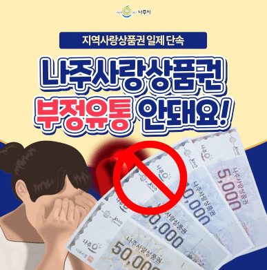 전라남도 나주시가 나주사랑상품권 10%특별할인 종료가 임박한 가운데 상품권을 불법으로 환전해 차액을 챙기는 이른 바 ‘깡’ 행위 방지를 위한 일제 단속을 실시하고 있다.