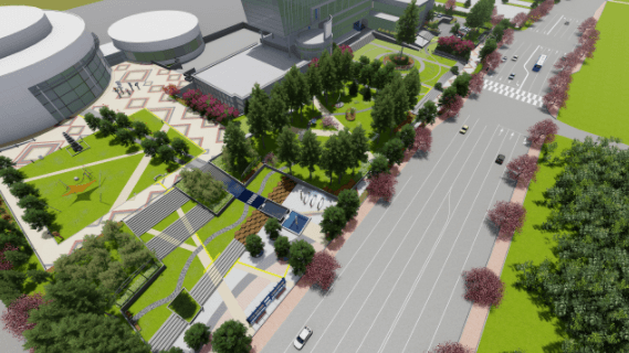 시청사 모두의 광장 정비공사는 2020년 01월 실시설계 시작으로 2021년 3월 공사를 착공하여 사람과 시민을 위한 컨셉으로 하는 “人”을 형상화하여 4개의 존으로 구성되는 광장으로 2021년 10월에 준공하게 되었다.