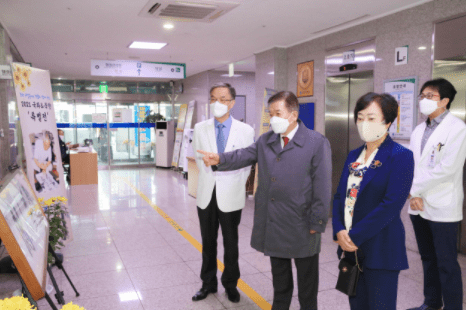 구충곤 화순군수가 26일 호남권역재활병원을 찾아 ‘2021 국화&묵향 특별전’을 관람했다.