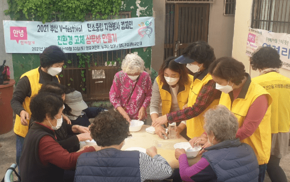 영도구 영선2동 자원봉사캠프에서는 지난 10월 25일 골목길 어르신들과 함께 친환경 고체 샴푸바 만들기를 실시하였다.