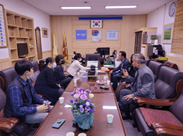 연천군 미산면행정복지센터는 26일 행정복지센터에서 2022년 미산면 마을달력 제작을 위한 7개 지역단체장 회의를 가졌다.
