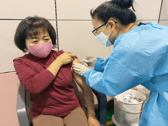 26일 보성군 백신접종센터에서 보성군민이 무료 독감 예방 접종을 맞고 있다.
