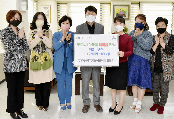 인천시 부평구는 지난 25일 부평구 정부지원어린이집 연합회로부터 커피 쿠폰 100매를 전달받았다.