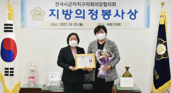 인천광역시 부평구의회 마경남 의원이 10월 25일 전국시군자치구의회 의장협의회가 수여하는 2021년 지방의정봉사상을 수상했다.