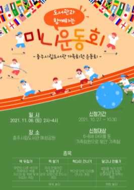 충주시립도서관이 가을을 맞이해 오는 11월 6일 도서관 가족회원들을 대상으로 미니운동회를 개최한다.
