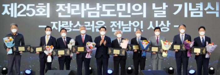 기념식에서는 또 2021년 전남을 빛낸 인물 9명에게 ‘자랑스러운 전남인 상’을 시상했다. 부문별 수상자 공적 내용은 경제 분야의 경우 정철섭 ㈜승진엔지니어링 대표는 기업 리더로서 지역인재 채용과 사회공헌활동에 앞장섰고, 석유화학 분야 기계‧부품 국산화로 생산 효율성을 증대했다.
