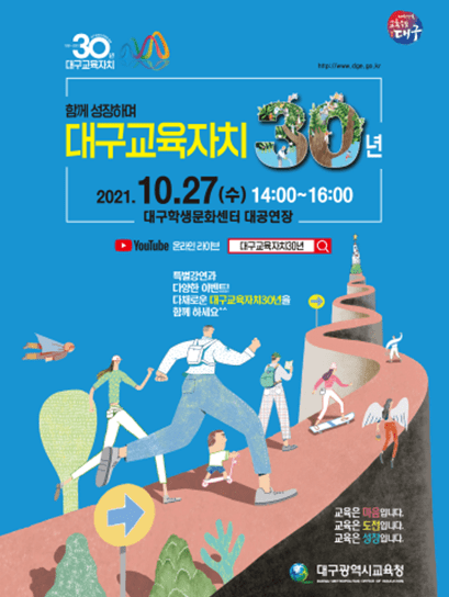 대구시교육청은 10월 27일 오후 2시 대구학생문화센터 대공연장에서 ‘함께 성장하며 대구교육자치 30주년’ 기념행사를 연다.