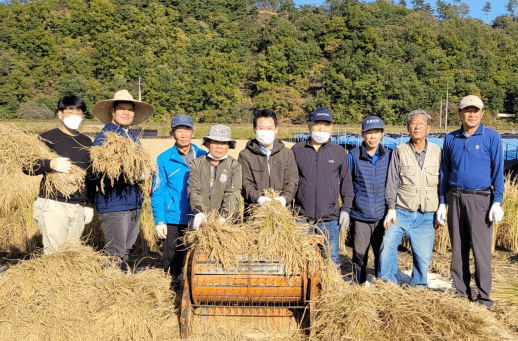 허필홍 홍천군수는 10월 25일 화촌면 성산1리 손 벼 베기 작업 현장을 방문, 일손을 도왔다.