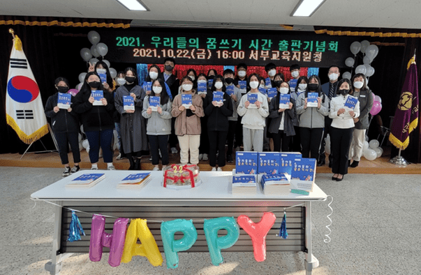 대구서부교육지원청은 중학생들의 진로진학 역량 강화를 위해 5월 7일부터 관내 중학교 2학년 학생 22명을 대상으로 운영한 2021.「오리날다 : 서부 꿈쓰기 진로독서 프로그램」을 총 13회에 걸쳐 마치고, 10월 22일 대구서부교육지원청 대회의실에서 ‘우리들의 꿈쓰기 시간’ 출판기념회를 개최했다.