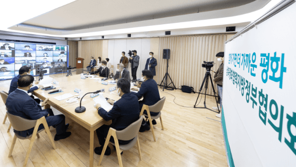 경기도는 이날 오후 경기도청 상황실에서 ‘남북평화협력 지방정부협의회 1차 총회’를 개최했다. 이날 총회는 평화부지사와 회장단은 현장에서, 회원들은 영상회의로 참여하는 온라인 비대면 방식으로 진행됐다.