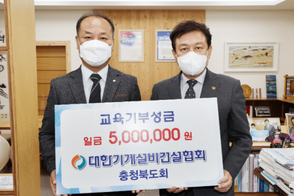 충청북도교육청은 25일 교육감 집무실에서 대한기계설비건설협회 충북도회에서 장학금을 기탁했다고 밝혔다.