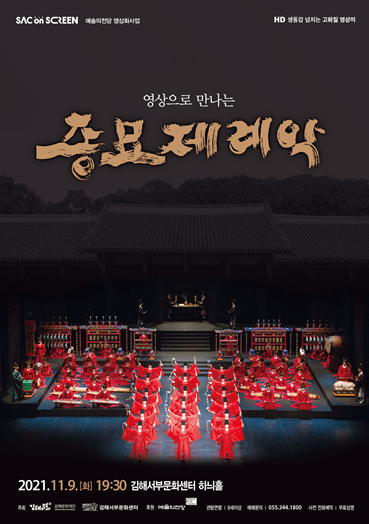 우리나라 중요무형문화재 제1호인 종묘제례악을 대형 스크린으로 생생하게 만나볼 수 있다. (재)김해문화재단 김해서부문화센터에서 11월 9일 19시 30분 2021 SAC ON SCREEN을 통해 '종묘제례악'을 상영한다.