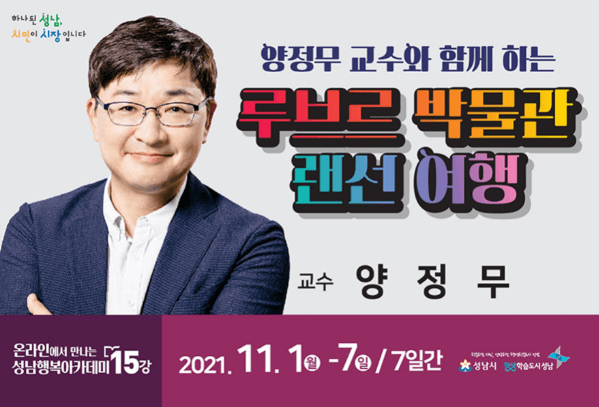 성남시는 양정무 한국예술종합학교 미술원 교수를 초빙해 오는 11월 1일부터 7일까지 온라인 성남행복아카데미 15강을 연다.