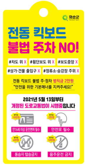 화순군이 전동킥보드 안전수칙 홍보 리플릿을 제작, 배포한다.