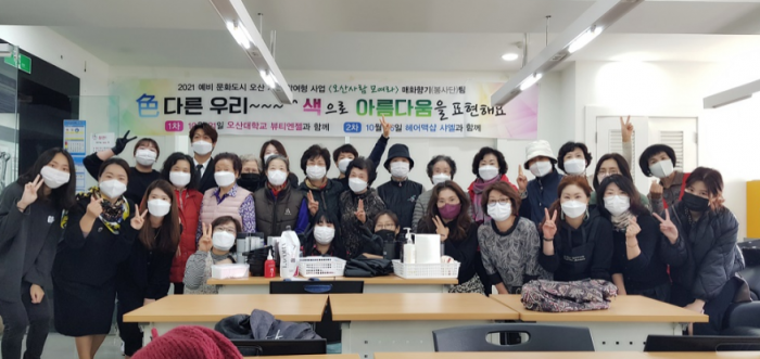 오산노인종합복지관은 지난 21일 오산대학교(희망관-뷰티코스메틱실습실)에서 뷰티엔젤&매화봉사단이 오산노인종합복지관 이용 어르신 10분께 이·미용 봉사 서비스 ‘色 다른 우리 색으로 아름다움을 표현해요.’를 진행했다고 25일 밝혔다.