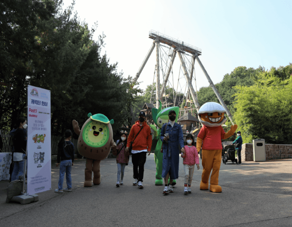 이날 행사에 참여한 보성군 농특산품 캐릭터 BS삼총사(녹차몬, 꼬막몬, 키위몬)는 에버랜드를 찾은 아이들과 소통하며 동심을 저격했다.