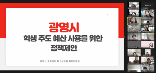 광명청소년교육의회 의장은“코로나19로 올해 청소년교육의회가 비대면 만남과 활동으로 진행되어 아쉬웠지만, 정책 제안 과정을 준비하면서 사회 참여의 발걸음을 시작하는 기회가 되었다.”고 말했다.