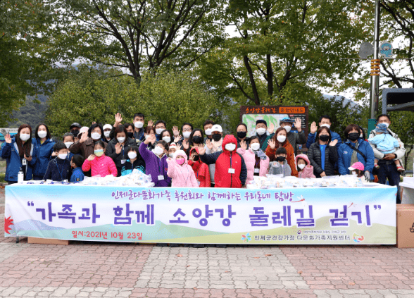인제군다문화가족후원회는 지난 10월 23일 다문화가족 24가족을 초정하여 가족과 함께하는 소양강 둘레길 걷기 행사를 진행하였다.