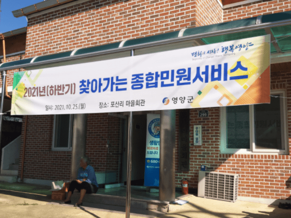 영양군은 10월 25일에 하늘아래 첫 동네로 불리는 석보면 포산리에서 현장민원실인‘찾아가는 종합민원서비스’를 실시했다.