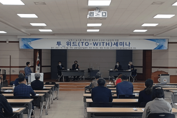 남원시농업기술센터는 품목생산자조직 경쟁력 제고 시범사업의 일환으로 투_위드(남원시 소규모 가공업체 상생을 위한 연구모임) 세미나를 10월 18일 개최하였다.