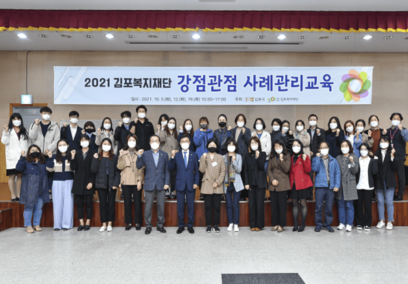 김포복지재단은 2021년 10월 5일부터 10월 19일까지 김포시 민・관 사례관리 담당자를 대상으로 매주 화요일 10시 ~ 5시, 총 3회 18시간 동안 ‘강점관점 사례관리교육’을 실시했다.